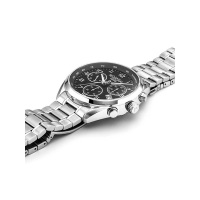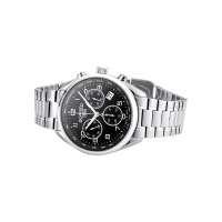 Корпус: Нержавеющая сталь. Чёрный циферблат. Стальные стрелки и часовые индексы в виде арабских цифр. Сапфировое стекло с антибликовым покрытием. Водонепроницаемость 100 метров. Диаметр 42 мм.