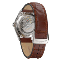 Корпус: Корпус выполнен из нержавеющей стали с полировкой и матовой шлифовкой (сатинированием) поверхностей. Белый циферблат часов украшен декоративным узором - гильоше. Накладные метки в виде штрихов и римской цифры XII. Люминесцентный состав светящийся в темноте на стрелках и часовых индексах. Сапфировое стекло с повышенной устойчивостью к появлению царапин имеет антибликовое покрытие с обеих сторон. Заводная коронка украшена миниатюрой эмблемой марки. Задняя крышка с прозрачным окном. Диаметр корпуса составляет 41 мм, толщина - 11,9 мм. Водостойкость 5 АТМ.