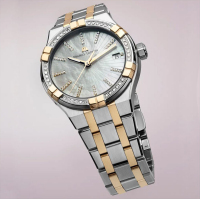 Корпус: Круглый корпус выполнен из нержавеющей стали, поверхности с матовой шлифовкой сатинированием и глянцевой полировкой. Выступы безеля с PVD покрытием цвета розового золота. Циферблат из натурального перламутра. Аппликация часовых индексов и стрелки с алмазной огранкой имеют золотое покрытие и полировку до зеркального блеска. Часовые индексы украшены бриллиантами. Фотолюминесцентный состав SLN на стрелках, светящийся в темноте. Сапфировое стекло с антибликовым покрытием. Диаметр корпуса составляет 35 мм. Водостойкость 10 ATM.