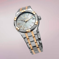 Корпус: Круглый корпус выполнен из нержавеющей стали, поверхности с матовой шлифовкой сатинированием и глянцевой полировкой. Выступы безеля с PVD покрытием цвета розового золота. Инкрустация бриллиантами. Сапфировое стекло с антибликовым покрытием. Циферблат из натурального перламутра. Аппликация часовых индексов и стрелки с алмазной огранкой имеют золотое покрытие и полировку до зеркального блеска. Часовые индексы украшены бриллиантами. Фотолюминесцентный состав SLN на стрелках, светящийся в темноте. Диаметр корпуса составляет 35 мм. Водостойкость 10 ATM.