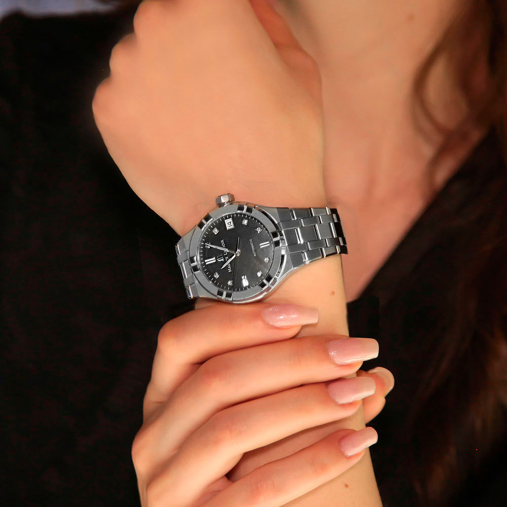 Корпус: Круглый корпус выполнен из нержавеющей стали, поверхности с матовой шлифовкой сатинированием и глянцевой полировкой. Циферблат чёрный перламутровый, часовые индексы украшены бриллиантами. Фотолюминесцентный состав SLN на стрелках, светящийся в темноте. Сапфировое стекло с двойным антибликовым покрытием. Прозрачная задняя крышка. Завинчивающаяся заводная головка. Диаметр корпуса составляет 35 мм. Водостойкость 20 ATM.