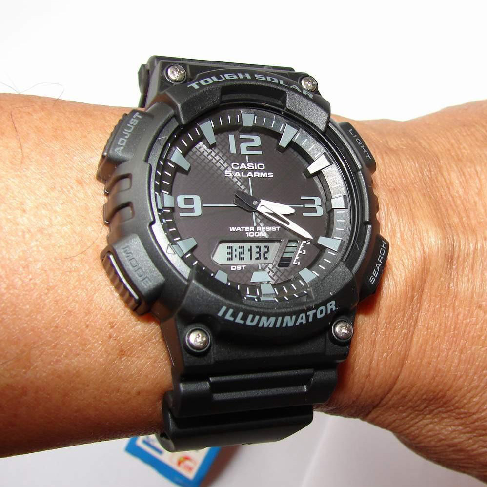 Корпус: Корпус часов сделан из полимерного пластика. Пластиковое стекло выпуклое, что обеспечивает высокий уровень прочности и устойчивости к давлению. Размер: 52,2 мм x 46,6 мм x 13 мм. Водозащита: 100 метров. Вес 39,5 гр.