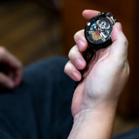 Функции: Центральные часовая, минутная и секундная стрелки. Хронограф. Часы-трансформер, можно использовать как наручные или карманные часы.