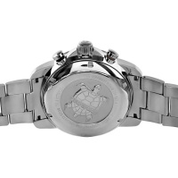 Функции: Индикация часов, минут при помощи центральных стрелок. Хронограф. Малая секундная стрелка и окошко даты в положении " 6 часов", тахиметрическая шкала по безелю.