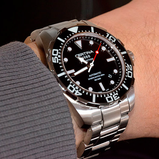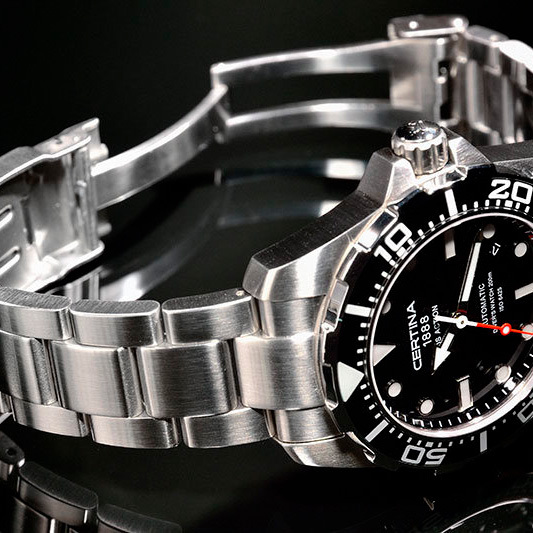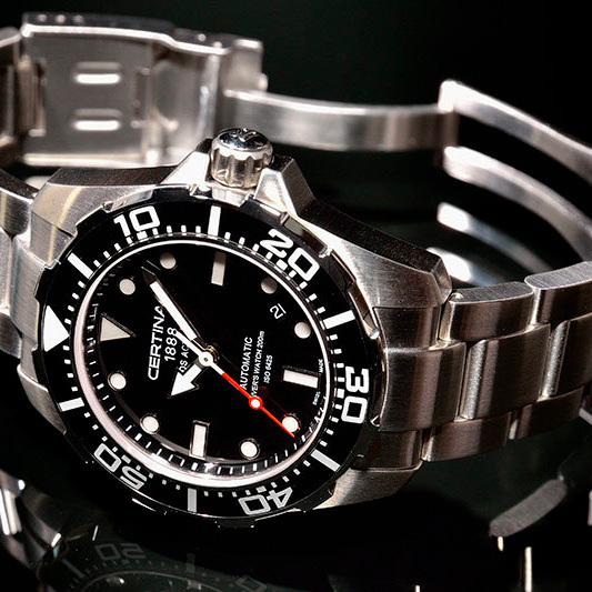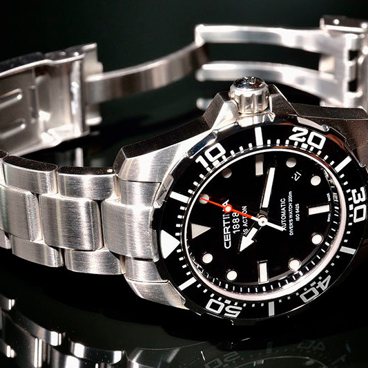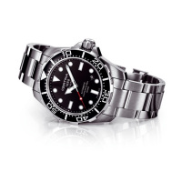 Корпус: Корпус из нержавеющей полированной/матовой стали. Вращающийся в одном направлении безель с 60 - минутной шкалой на полированном чёрном кольце. Чёрный циферблат. Стрелки и часовые индексы серебристого цвета с  люминесцентным покрытием.  Завинчивающаяся заводная коронка. Сапфировое стекло с антибликовым покрытием. Диаметр 43.2 мм. Водостойкость 200 м. Система DS.