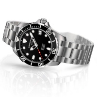 Корпус: Корпус из нержавеющей полированной/матовой стали. Вращающийся в одном направлении безель с 60 - минутной шкалой на чёрном кольце . Чёрный циферблат с серебристыми стрелками и рисками.  Люминесцентное покрытие часовой, минутной стрелок и часовых индексов. Сапфировое стекло с антибликовым покрытием. Завинчивающаяся заводная коронка. Диаметр 41 мм. Водостойкость 300 м. Система DS.