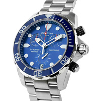 Корпус: Корпус из нержавеющей полированной/матовой стали. Вращающийся в одном направлении безель с 60 - минутной шкалой на синем кольце . Синий циферблат с серебристыми стрелками и рисками. Люминесцентное покрытие часовой, минутной стрелок и часовых индексов. Сапфировое стекло с антибликовым покрытием. Завинчивающаяся заводная коронка. Диаметр 43 мм. Водостойкость 300 м. Система DS.