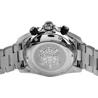 Функции: Индикация часов и минут при помощи центральных стрелок. Хронограф с 60-ти секундным, 30-ти минутным счетчиками и счетчиком 10-х долей секунд. Маленькая, отдельно вынесенная секундная стрелка и дата в положении "6 часов".