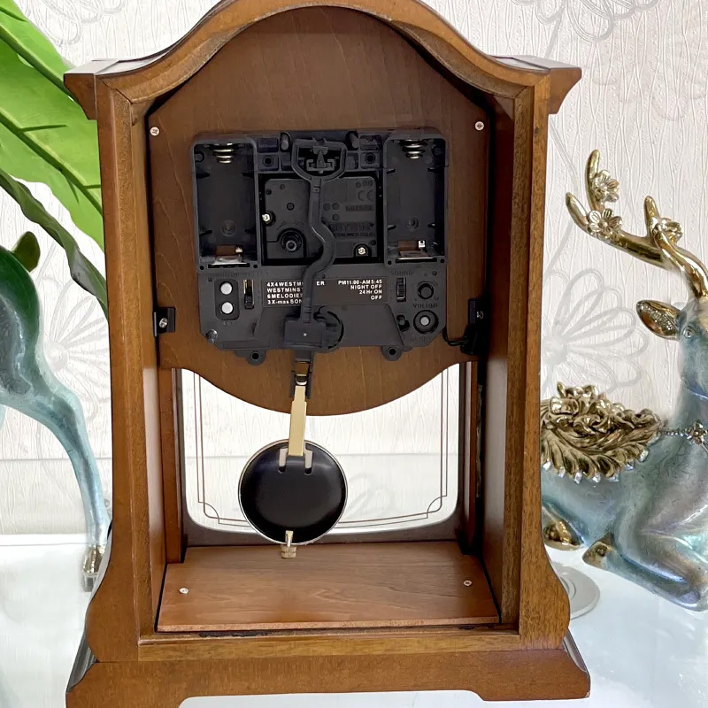 4. 3 рождественские мелодии каждый час. Автоматическое отключение на ночь с 22-00 до 6-00. Регулировка громкости звука мелодии. Настольные музыкальные часы с маятником и боем курантов, в деревянном корпусе.