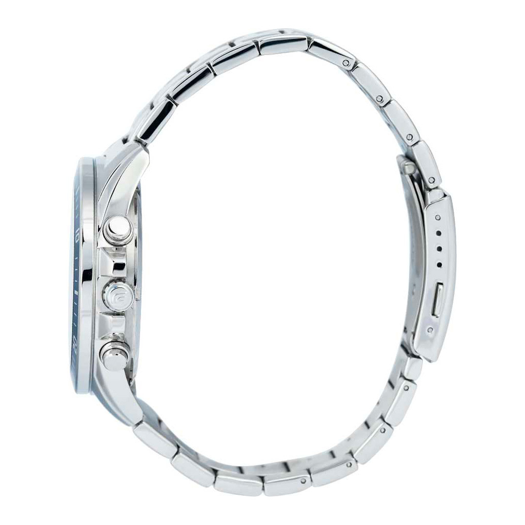Корпус: Корпус выполнены из высококачественной стали с антикоррозийными свойствами. Безель с IP-покрытием. Циферблат синего цвета с метками в виде штрихов выполнен по технологии Sunray (солнечные лучи). Необритовое светонакопительное покрытие обеспечивает длительное послесвечение в темноте даже после кратковременного нахождения на свету. Минеральное стекло устойчиво к появлению царапин. Завинчивающаяся заводная головка с защитой. Диаметр 47 мм. Водонепроницаемость 100 М.