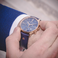 Корпус: Корпус из нержавеющей стали с покрытием PVD. Синий сатинированный циферблат, золотистые стрелки и риски. Сапфировое стекло. Водонепроницаемость 50 метров. Размер 40 мм.