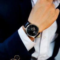 Ремешок: Кожаный ремень с классической застежкой. Цвет чёрный.