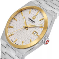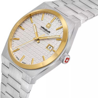 Корпус: Корпус выполнен из высококачественной стали с повышенной устойчивостью к коррозии, поверхности с матовой шлифовкой – сатинированием и частичным PVD покрытием. Белый циферблат защищен закаленным минеральным стеклом с сапфировым покрытием, обеспечивающим исключительную устойчивость к царапинам. Накладные часовые индексы и срелки выполненый из стали с позолотой. Стрелки с покрытием SuperLuminova, которое обеспечивает подсветку в темное время суток. Диаметр корпуса: 42 мм. Водозащита до 50 метров позволит принимать душ или умываться, не снимая часов.