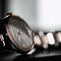 Корпус: Нержавеющая сталь/розовое золото, сапфировое стекло с антибликовым покрытием. Диаметр 40 мм,  водонепроницаемость 50 метров. Циферблат – белый.