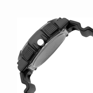 Корпус: Корпус из высококачественной полимерного материала – прочного и долговечного, с малым весом, чёрного цвета. Циферблат с объемной структурой крупными накладными метками. Необритовое светонакопительное покрытие обеспечивает длительное послесвечение в темноте даже после кратковременного нахождения на свету. Выступы корпуса служат защитой для переводной коронки. Задняя крышка из нерж. стали имеет винтовое соединение с корпусом. Габаритные размеры: