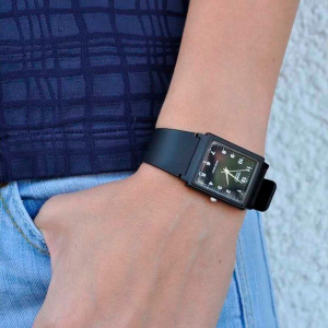 Корпус: Корпус из высококачественной полимерного материала – прочного и долговечного, с малым весом, чёрного цвета. Циферблат чёрного цвета с арабскими цифрами защищён акриловым стеклом. Задняя крышка из нерж. стали. Габаритные размеры: 26,5 x37,2 мм, толщина 8 мм, вес 19г. Водозащита: 3 ATM.