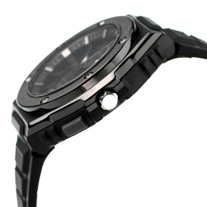 Корпус: Корпус часов сделан из полимерного пластика и металла с чёрным IP покрытием. Черный циферблат защищен акриловым стеклом, которое успешно противостоит внешнему давлению. Циферблат выполнен по технологии Sunray (солнечные лучи). Метки в виде штрихов и двух арабских цифр. Заводная головка с защитой. Циферблат подсвечивается ярким светодиодом. Цвет подсветки: оранжевый. 12-ти и 24-х часовой формат времени. Диаметр 50мм. Водозащита 100 метров.