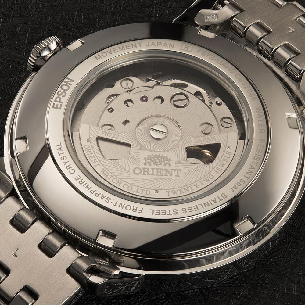 Механизм: Часы с автоподзаводом и возможностью ручного завода. Калибр механизма F6722, 22 камня, частота 21600 полуколебаний в час. Функция stop-second. Запас хода 40 часов.
