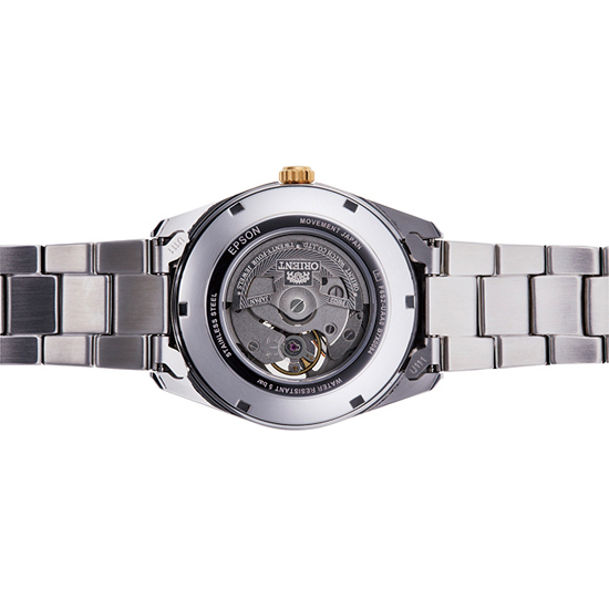 Корпус: Корпус выполнен из нержавеющей стали с частичным PVD покрытием. Белый циферблат. Аппликация часовых индексов, а также стрелки из стали с полировкой до алмазного блеска с покрытием золота. Фотолюминесцентный состав на стрелках и на разметке циферблат. Сапфировое стекло. Завинчивающаяся задняя крышка. Диаметр 40,8 мм. Водонепроницаемисть 100 м.