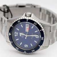 Корпус: Корпус часов выполнен из нержавеющей стали. Безель вращается в одном направлении. Минеральное стекло. Синий циферблат. Стрелки и метки с люминесцентным покрытием. Завинчивающаяся задняя крышка. Диаметр корпуса: 42 мм. Водонепроницаемость - 200 м.