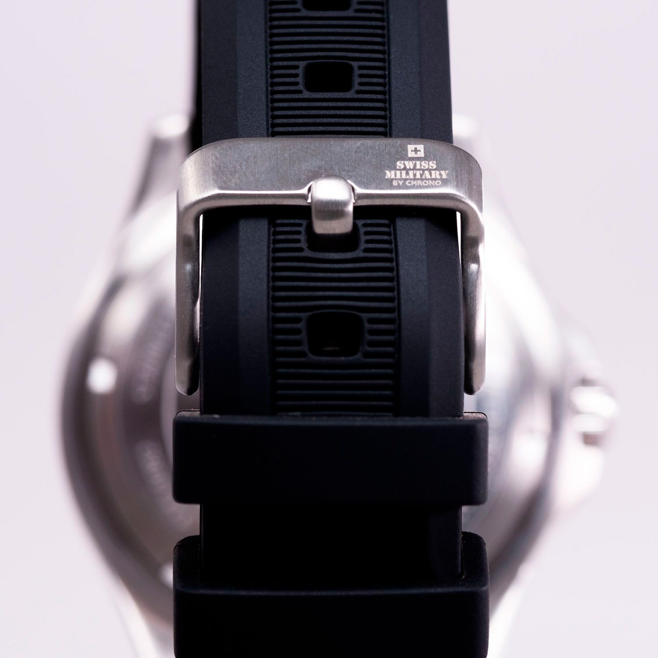 Корпус: Корпус выполнен из нержавеющей стали. Черный циферблат с часовыми индексами в виде штрихов и цифр. Стрелки и часовые индексы с люминесцентным покрытием. Минеральное стекло с сапфировым покрытием. Заводная головка с защитой. Водонепроницаемость 50 метров. Диаметр 42 мм.