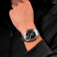 Корпус: Корпус выполнен из нержавеющей стали. Чёрный циферблат, выполнен по технологии Sunray (солнечные лучи). Метки в виде арабских цифр. Рифленая заводная головка с защитой украшена фирменным логотипом. Сапфировое стекло, особо устойчивое к царапинам. Диаметр корпуса составляет 43 мм. Водостойкость WR 100.