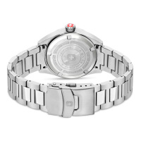 Корпус: Корпус выполнен из нержавеющей стали. Синий циферблат, выполнен по технологии Sunray (солнечные лучи). Метки в виде арабских цифр. Рифленая заводная головка с защитой украшена фирменным логотипом. Сапфировое стекло, особо устойчивое к царапинам. Диаметр корпуса составляет 43 мм. Водостойкость WR 100.