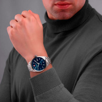 Ремешок: Браслет выполнен из нержавеющей стали 316L, поверхности с матовой шлифовкой (сатинирование) и полировкой до зеркального блеска, с раскладывающаяся при нажатии на кнопки застёжкой.