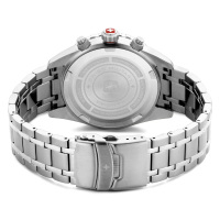 Функции: Центральные часовая и минутная стрелки. Индикация даты. Тахиметр. Хронограф.