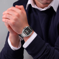 Ремешок: Браслет выполнен из нержавеющей стали 316L, поверхности с матовой шлифовкой (сатинирование) и полировкой до зеркального блеска, с раскладывающаяся при нажатии на кнопки застёжкой.