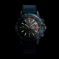 Функции: Центральные часовая и минутная стрелки, вынесенная секундная стрелка. Апертура даты в позиции "3 часов". Тахиметр, хронограф.