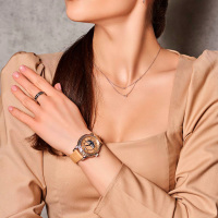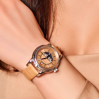 Ремешок: Бежевый ремешок из телячьей кожи с тиснением под аллигатора, классическая застежка – пряжка из нержавеющей стали.