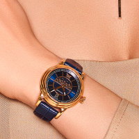Ремешок:  Кожаный текстурированный ремешок синего цвета с возможностью быстрой замены.