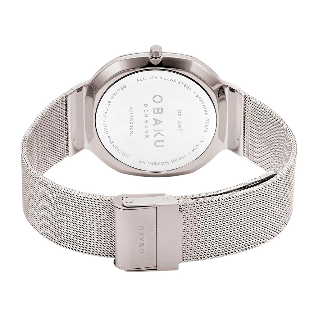 Ремешок: Стальной браслет выполнен в технике миланского плетения, раскладная застежка.