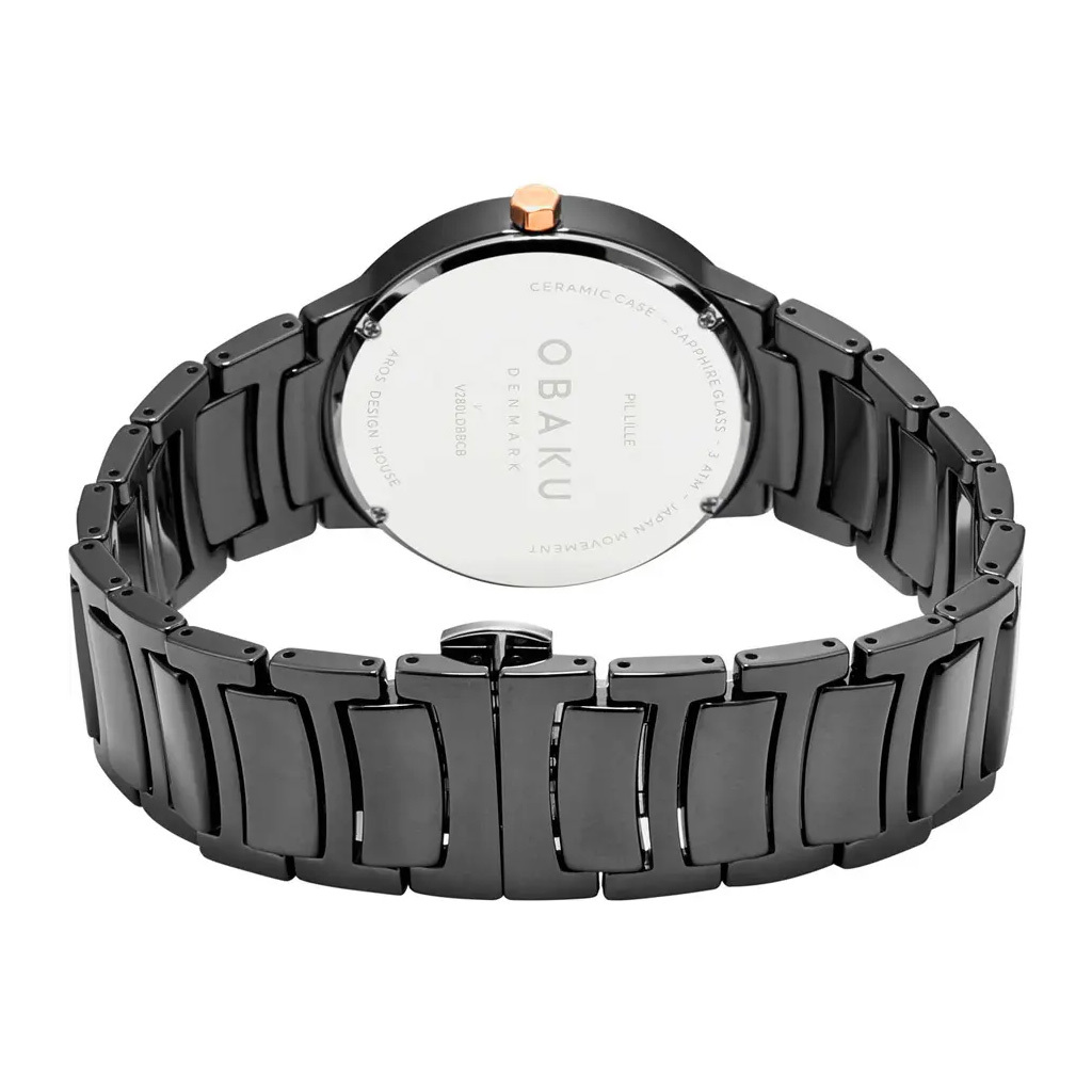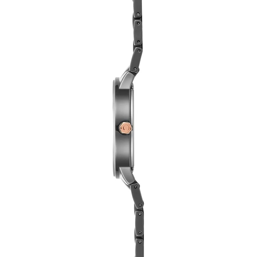 Корпус: Корпус выполнен из чёрной керамики. Чёрный циферблат с часовыми индексами в виде штрихов. Устойчивое к возникновению мелких механических повреждений сапфировое стекло. Диаметр корпуса 38 мм. Водостойкость WR 30.