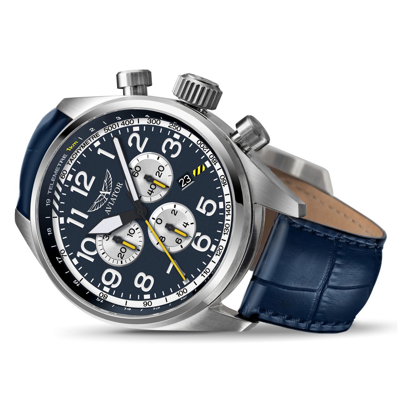 Корпус: Корпус модели выполнен из высококачественной стали с повышенной устойчивостью к коррозии марки 316L. Циферблат синего цвета, чёрные стрелки. Цифры в стиле “пилот” выполнены методом печати. Стрелки и метки с покрытием SuperLuminova, отлично читаются в полнейшей темноте и в условиях слабой освещенности. Сапфировое стекло с антибликовым покрытием. Переводная коронка с двойным уплотнителем, винтовой фиксацией и увеличенного размера для удобства вращения рукой в летной перчатке с гравировкой в виде буквы «A». Диаметр 45 мм. Водозащита 100 метров.