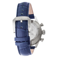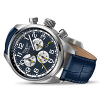 Ремешок: Синий ремешок из телячьей кожи с тиснением под аллигатора, ширина 22/20 мм, классическая застежка – пряжка из нержавеющей стали.