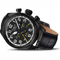 Корпус: Корпус изготовлен из нержавеющей стали 316L, устойчивой к коррозии, отличающейся высокой прочностью и устойчивостью к царапинам. Стойкое к царапинам PVD покрытие черного цвета. Матовый циферблат с зернистой отделкой имеет окраску черного цвета. Дополнительные индикаторы с рельефом в виде тонких концентрических линий. Контрастные часовые метки и цифры в стиле “пилот” выполнены методом печати. Яркие акценты и окраска вспомогательных стрелок желтым цветом обращается к оформлению приборной панели «Аэрокобры». Стрелки и метки на циферблате имеют люминесцентное покрытие позволяющее легко определять время даже в темноте. Сапфировое стекло с антибликовым покрытием защищает циферблат от царапин и обеспечивает отличную читаемость при любом освещении. Переводная коронка с двойным уплотнителем и винтовой фиксацией для дополнительной защиты от попадания воды внутрь корпуса. Переводная коронка увеличенного размера для удобства вращения рукой в летной перчатке с гравировкой в виде буквы «A» - заглавной в названии марки. Задняя крышка имеет резьбовое соединение с корпусом. В оформлении задней крышки использована стилизация под элементы дизайна самолетов Airacobra. Диаметр часов: 45 мм. Водозащита до 10 ATM (100 метров) делает часы подходящими для плавания.
