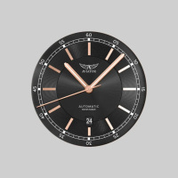 Корпус: Нержавеющая сталь марки 316L с розовым PVD покрытием. Объемный циферблат чёрного цвета с различной финишной обработкой: в центральной части шлифовка в стиле «солнечные лучи», окруженная гильошированием в виде тонких концентрических линий. Стрелки и часовые индексы покрыты люминесцентным составом SuperLuminova. Сапфировое стекло с антибликовым покрытием. Переводная коронка с двойным уплотнителем для дополнительной защиты от попадания воды внутрь корпуса. Задняя крышка с прозрачным окном из сапфирового стекла имеет винтовое соединение с корпусом. В оформлении задней крышки использована стилизация под один из инструментов управления из кабины самолета Douglas DC-3. Гравировка с градусами на крышке корпуса и стрелка на роторе автоподзавода имитируют функцию угла перекладки руля, которая контролирует положение передней и задней частей самолета. Водонепроницаемость 100 метров. Диаметр 45 мм.