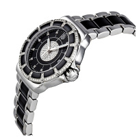 Корпус: Нержавеющая сталь. Стальной безель украшен черной керамической вставкой и 84 бриллиантами. На циферблате 64 бриллианта. Сапфировое стекло. Завинчивающаяся заводная коронка, водонепроницаемость 200 метров. Диаметр 37 мм.