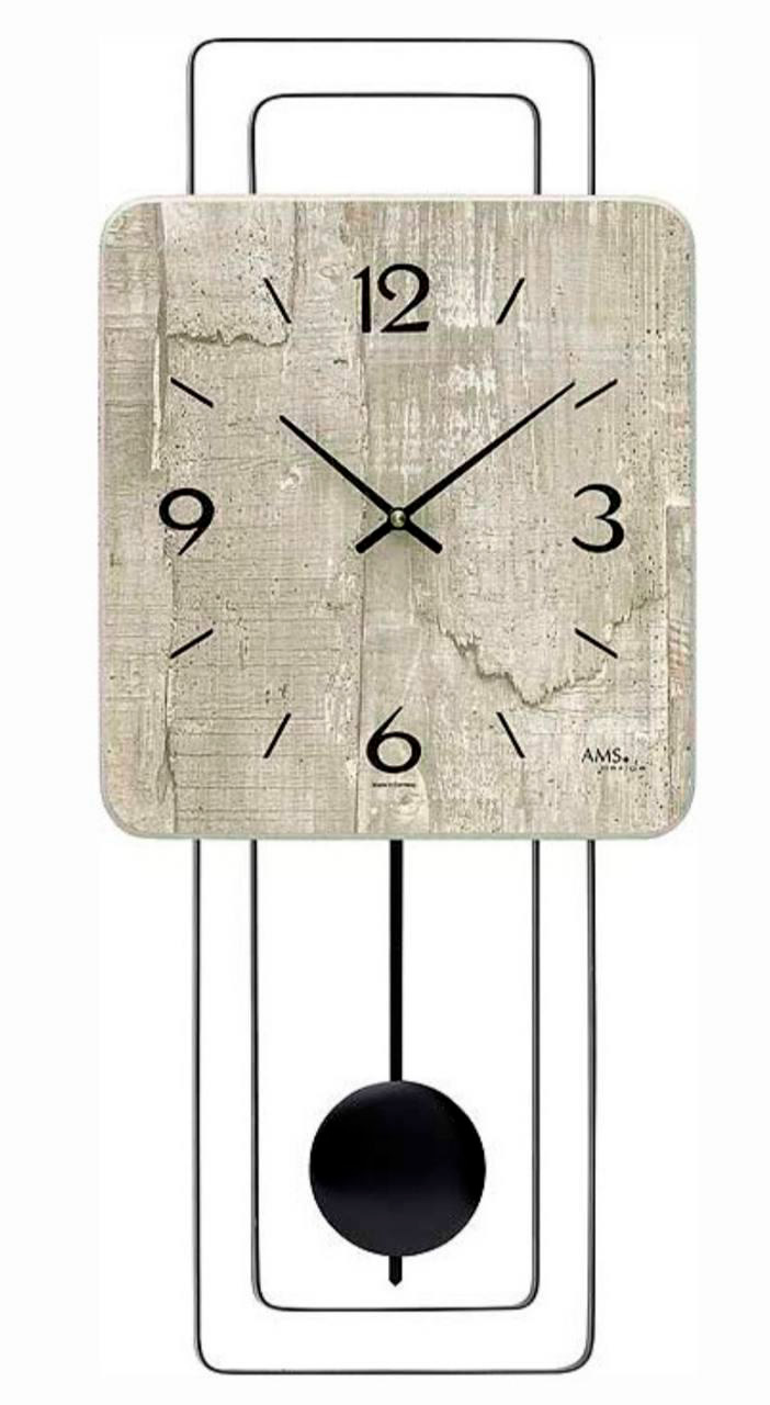 AMS 7503 – это смелый эксперимент с фактурой и формой. В этой модели дизайнеры AMS отошли от традиционных материалов и обратились к современным трендам. Корпус, выполненный из дерева и металла черного цвета, дополнен циферблатом, декорированным под бетон серого цвета. Часовые индексы и стрелки аналогично выполнены в черном цвете, создавая гармонию и сдержанность. Особенность этой модели - декоративный маятник, выполненный из металла черного цвета, что делает эту модель более вытянутой и заметной на стене. Кварцевый механизм обеспечивает точность хода, а отсутствие шума – комфорт в использовании.