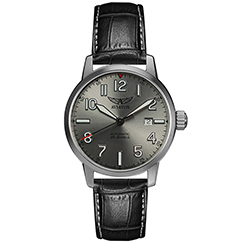 1. Модель V.3.21.0.137.4: корпус с серым оттенком; серебристый циферблат; белые цифры, индексы и стрелки часов и минут с чёрной окантовкой, чёрная секундная стрелка с красным наконечником; чёрный кожаный ремешок. | |