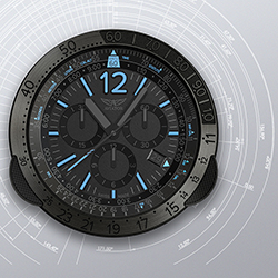 • Позаимствованный у многофункциональной панели инструментов МИГ29, циферблат позволяет считывать три уровня информации: аэронавигационную на логарифмической шкале вращающегося ободка, время и секундомер на трех счетчиках циферблата и центрального хронографа.