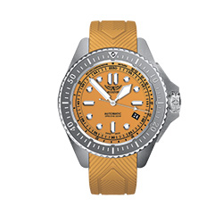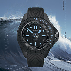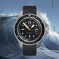 В первой модели XPRO DIVE 300 AUTO воплощена инженерная мощь и характер бренда. Корпус диаметром 42,8 мм сочетает функциональность дайверских часов с аэродинамичной эргономикой авиационных приборов. Внутри - швейцарский механизм Sellita SW200-1 с автоподзаводом и запасом хода 38 часов. Циферблат отличается чёткой читаемостью, крупными индексами и покрытием Super-LumiNova, обеспечивающим видимость даже на глубине 300 метров. Задняя крышка украшена уникальной таблицей бездекомпрессионных пределов, созданной специально для погружений в высокогорных озёрах. Это часы для тех, кто живёт на грани стихий — неба и воды.