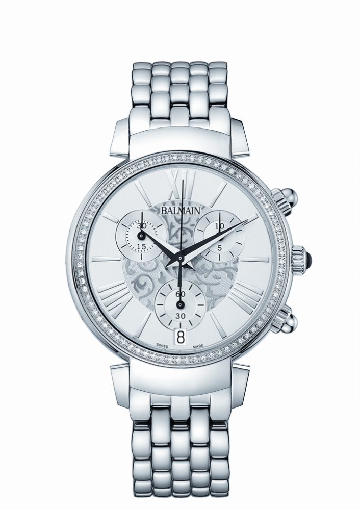 Как и любой хронограф, часы отсчитывают время (до 30 минут). В корпусе диаметром 38 мм из полированной стали, водонепроницаемом до глубины 50 м находится предельно надежный швейцарский кварцевый механизм. На некоторых моделях корпус украшен 76 алмазами. Часы снабжены окошком даты и тремя счетчиками — десятых долей секунды и минут хронографа, текущих секунд, а также устойчивым к царапинам сапфировым стеклом. Как и на многих часах Balmain, посеребренный циферблат некоторых моделей украшен дорогим для Пьера Бальмена классическим узором арабески. На других моделях циферблат изготовлен из белого перламутра или черного полированного лака.