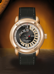 Украшением этой модели служит мануфактурный механизм с оригинальным дисплеем отображения времени. «Числовое» усложнение модели IO Jumping Hours имеет характерную особенность, а именно – часы и минуты отображаются в двух больших окошках. Таким образом, стрелки здесь заменены двумя вращающимися дисками, на которых отображены часы и минуты. По завершении определенного отрезка времени, цифра, обозначающая часы, немедленно «прыгает», тогда как отображение минут происходит при помощи постоянно вращающегося диска. Особенно эффектно модель выглядит в розовом золоте.