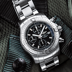 Breitling Avenger Chronograph 45 – классическая модель для пилотов. Эти часы имеют 45-миллиметровый корпус из нержавеющей стали, оснащенный вращающимся в одном направлении безелем с храповым механизмом. Циферблат выполнен в черном или синем цвете. Модель с черным циферблатом предлагается в комплекте с браслетом из нержавеющей стали с раскладной застежкой-клипсой либо кожаным армейским ремешком антрацитового цвета с