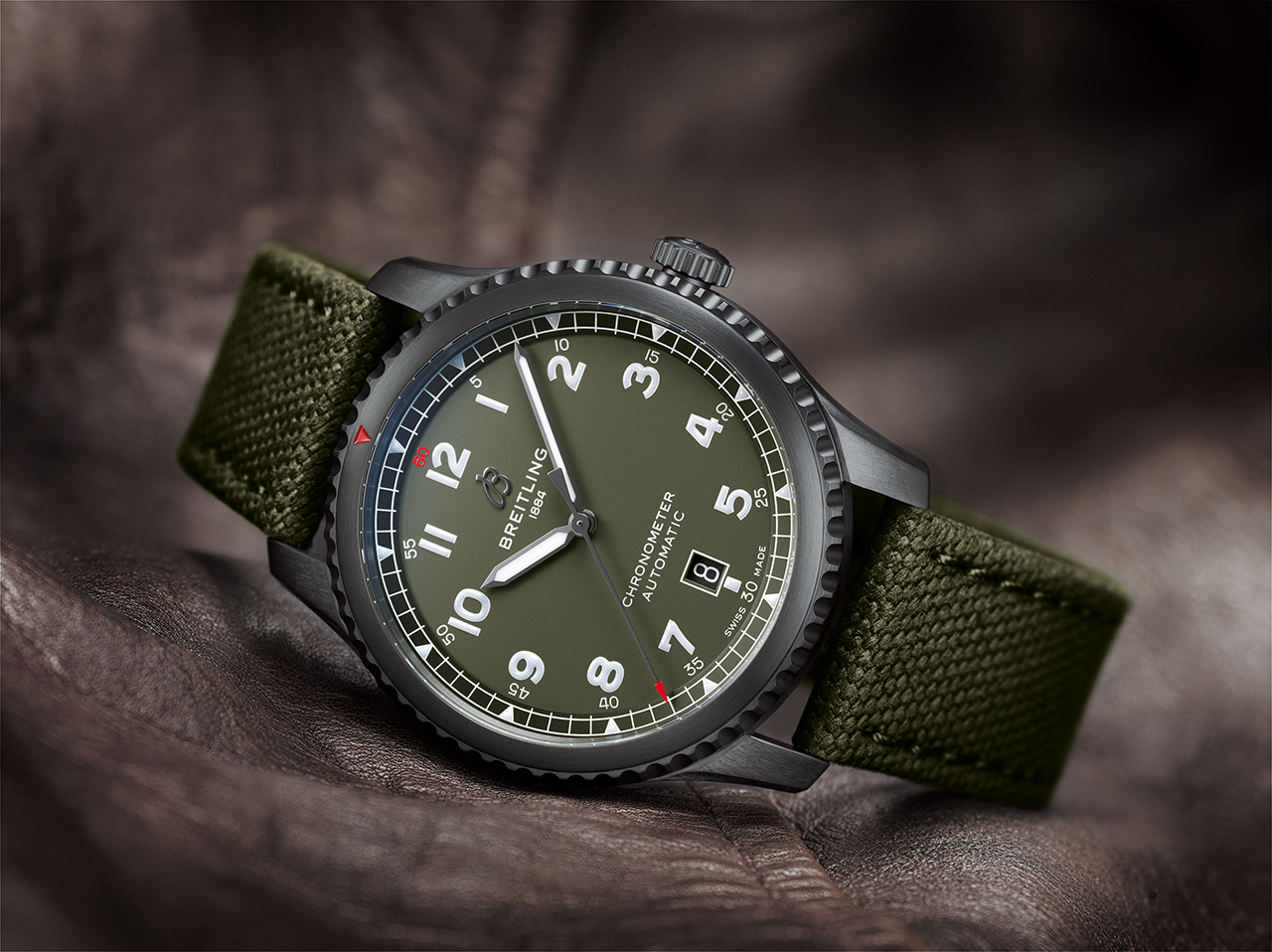 Часы в корпусе из нержавеющей стали с высокопрочным углеродным покрытием DLC оснащены механизмом Breitling Caliber 17, который обеспечивает запас хода около 40 часов и сертифицирован COSC.