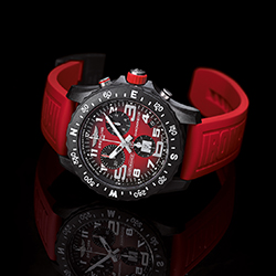 • Красный, с черным внутренним безелем со шкалой пульсометра, счетчиками хронографа черного цвета и логотипом IRONMAN® у отметки «6 часов».