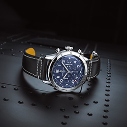 В новую серию входят пять моделей часов, посвященных четырем знаменитым военным самолетам. Их изящные силуэты украшают заднюю крышку каждого хронографа, выполненную из сапфирового стекла.